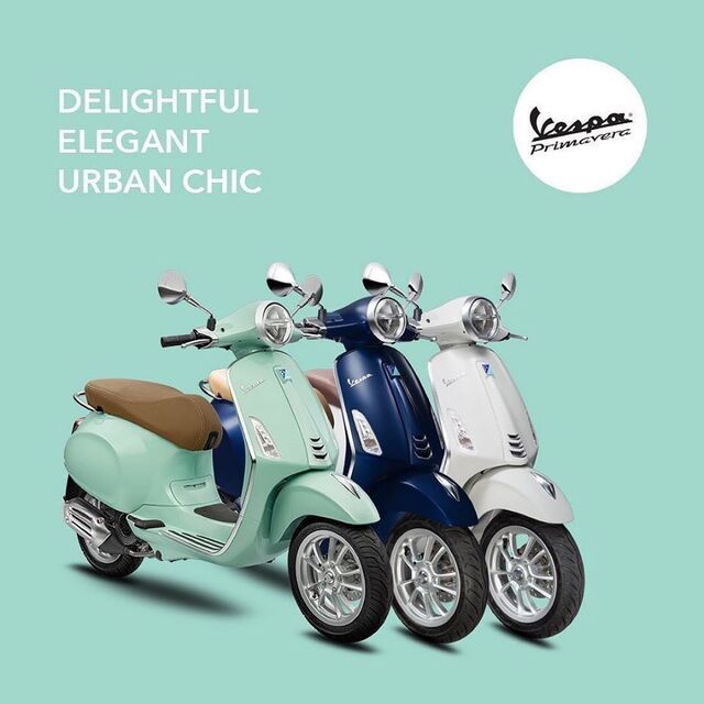 In terms of quality and safety, the technology in the Vespa Primavera marks a leap forward compared to current โsmall bodyโ models: the new front suspension with the shock damper hinged to the base, 11โ wheels, new digital instrumentation including a trip computer, LED daylights and tail light (on the 125 and 150cc) and a full range of engines that improve consumption and reduce emissions are all good for our planet too.